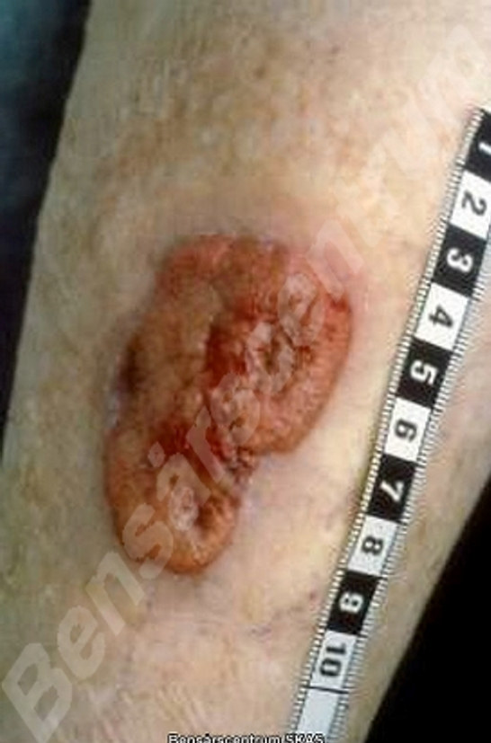 Atypiska sår som inte läker samt ovanlig lokalisation av såren är ett observandum. Diagnos ställs med hjälp av hudbiopsi. Vid melanommisstanke excideras om möjligt hela förändringen.